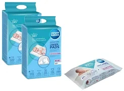 CANPOL BABIES - wielofunkcyjne podkłady higieniczne 90x60cm z paskiem samoprzylepnym 2 x 10 szt. + chusteczki 60 szt.