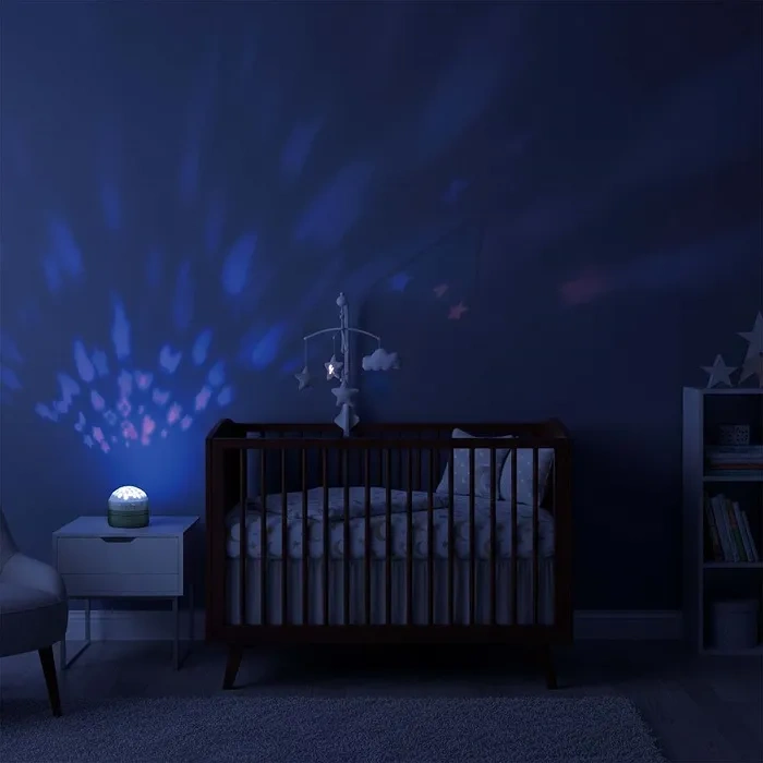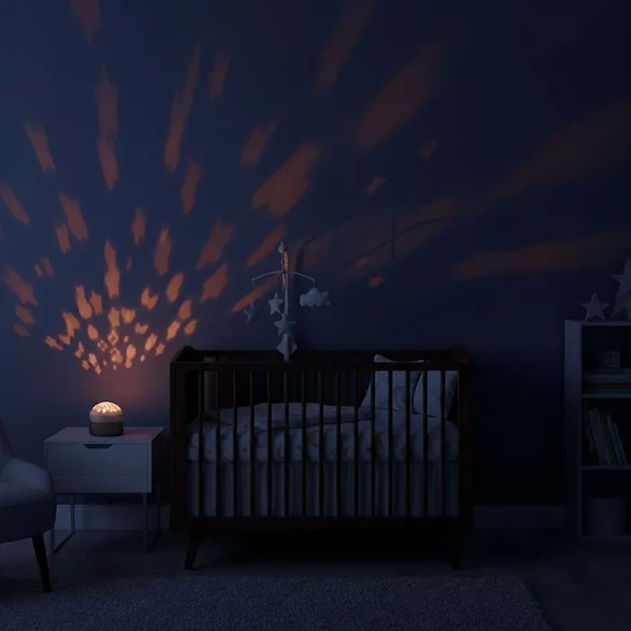 To połączenie oświetlenia, dźwięku i inteligentnych funkcji, które razem tworzą poczucie bezpieczeństwa i ułatwiają dziecku przejście ze stanu czuwania w sen.