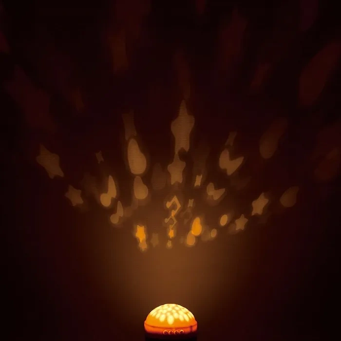 Projektor emituje przyjemne światło w dwóch kolorach, a 7 poziomów jasności pozwala stworzyć atmosferę, która pomaga dziecku się wyciszyć.