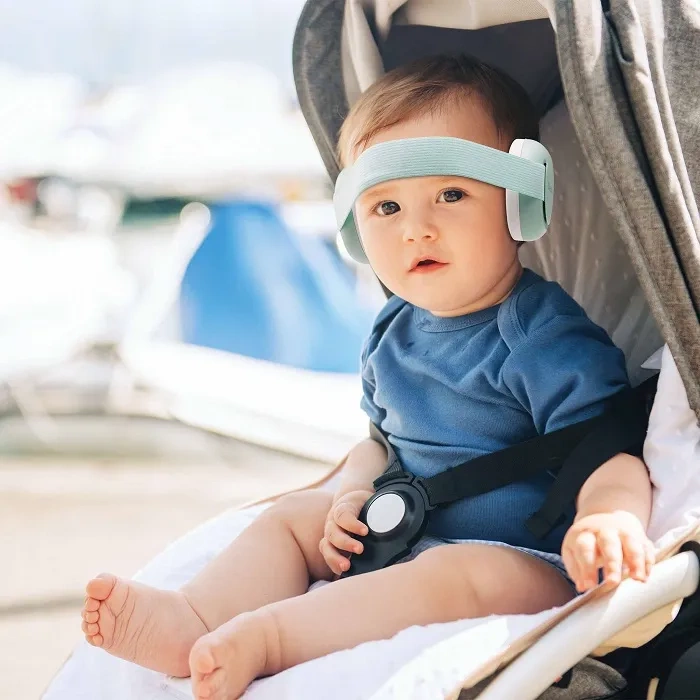 - miękka, elastyczna taśma w połączeniu z lekkimi nausznikami zapobiegają naciskowi na delikatną głowę maluszka;