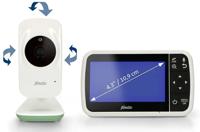 Alecto Baby DVM149GN to elektroniczna niania wideo charakteryzująca się doskonałą jakością obrazu i dźwięku. Kolorowy wyświetlacz o przekątnej 4,3 cala natychmiast pokazuje, co dzieje się pokoju dziecka, korzystając z kamery. Niania Alecto DVM149GN zapewnia krystalicznie czysty dźwięk i wyraźny obraz - zarówno w dzień, jak i w nocy.