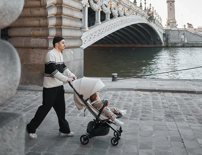 5-punktowe pasy bezpieczeństwa zapewniają właściwą pozycję podczas spaceru, a miękkie nakładki naramienne chronią delikatną skórę dziecka przed przypadkowym otarciem.