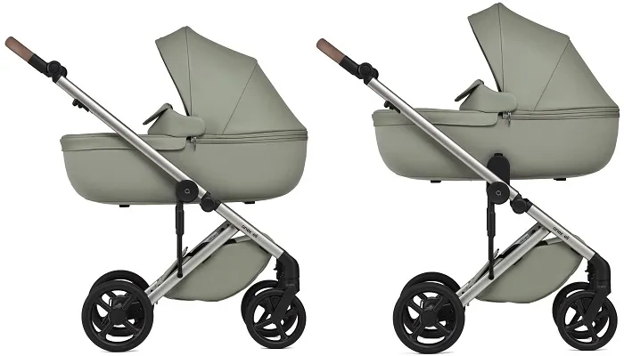 W wózku Eli przy pomocy załączonych w zestawie adapterów można dopasować wysokość gondoli i siedziska do wzrostu rodzica.