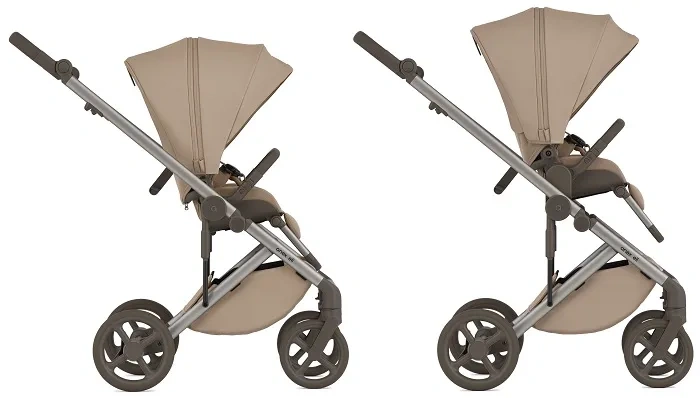 Siedzisko składane w obu kierunkach ułatwia rodzicom przenoszenie wózka, gdy jest to konieczne.