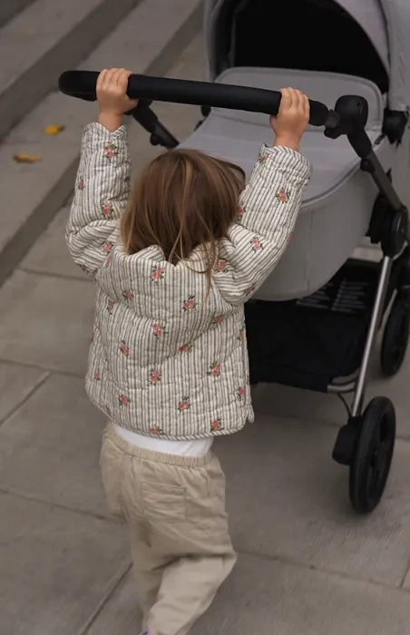 Regulacja wysokości rączki pozwala dopasować wysokość uchwytu do wzrostu rodzica.