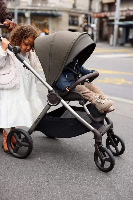 Łatwy system składania spacerówki z siedziskiem obróconym w dowolnym kierunku i składanie spacerówki buggy do wielkości walizki to rozwiązania, które wspierają rodzinne podróże.