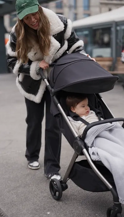 Łatwy system składania spacerówki z siedziskiem obróconym w dowolnym kierunku i składanie spacerówki buggy do wielkości walizki to rozwiązania, które wspierają rodzinne podróże.