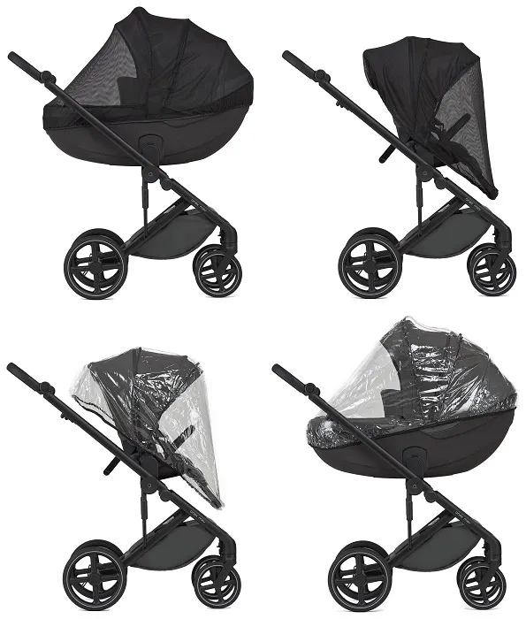 Duża, niezależna budka w spacerówce Mev zabezpieczy dziecko przed niechcianymi warunkami atmosferycznymi.