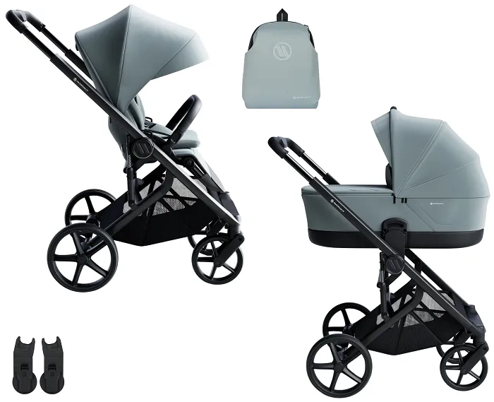 Wystarczy dokupić dedykowane do wózka adaptery (w zestawie), wpiąć nosidełko dla niemowlaka (brak w zestawie) na stelaż i cieszyć się wspólnymi zakupami czy krótką przechadzką bez przekładania maluszka.