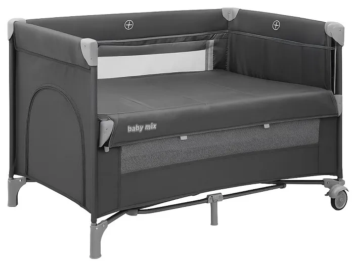 BABY MIX Side - łóżeczko turystyczne z opuszczanym bokiem | Szare