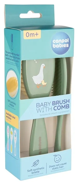 CANPOL BABIES Goose - szczotka i grzebień z miękkim włosiem | Zielona