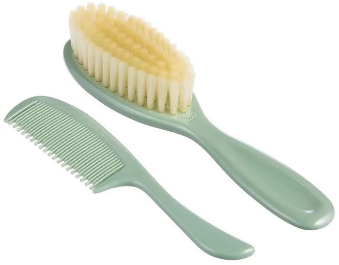 Grzebień wyposażono w specjalnie zaokrąglone ząbki, które nie podrażniają delikatnej skóry niemowlęcia.