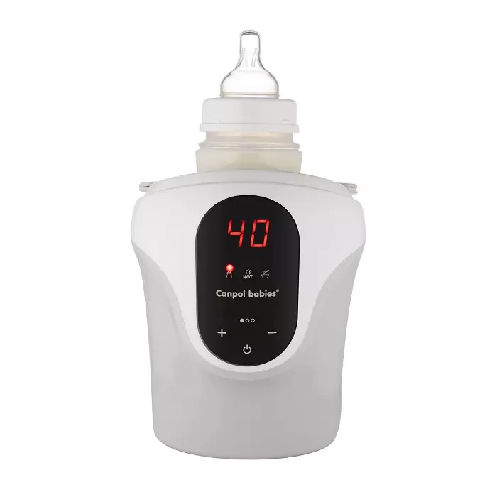 Canpol babies podgrzewacz i sterylizator do butelek 4w1 z termostatem to wielofunkcyjne urządzenie, które pozwala w łatwy i szybki sposób przygotować pokarm dla dziecka. Dotykowy i intuicyjny panel sterowania oraz praktyczne 4 funkcje zapewniają komfort i wygodę użytkowania. Szybko i równomiernie podgrzewa mleko i obiadki w słoiczkach, utrzymuje temperaturę pokarmu nawet przez całą noc oraz bezpiecznie rozmraża, a w razie potrzeby może zdezynfekować butelki i smoczki. Urządzenie działa w 3 trybach: butelka – utrzymanie temperatury pokarmów płynnych do 10 godzin, hot – szybkie podgrzewanie oraz dezynfekcja parą wodną i obiadek – utrzymanie temperatury pokarmów stałych do 3 godzin. Podgrzewacz jest uniwersalny, pasuje do większości dostępnych na rynku butelek i smoczków. To niezbędny pomocnik każdej karmiącej butelką mamy, a w późniejszym okresie podczas rozszerzania diety Maluszka.
