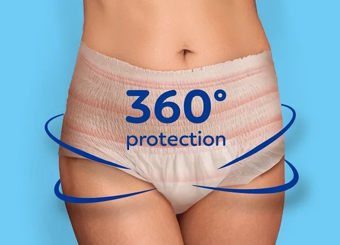 Dzięki możliwości wchłaniania aż do 400 ml płynów, majtki skutecznie zapobiegają przeciekaniu - zapewniając uczucie suchości przez wiele godzin.