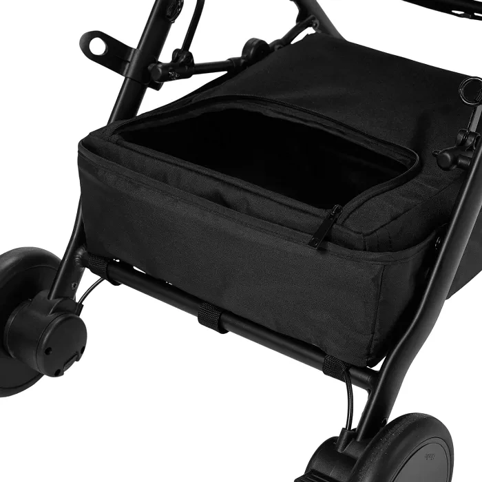 Gdy musisz złożyć wózek do rozmiarów podróżnych lub chcesz mieć niezbędne drobiazgi pod ręką, zasuń zapięcie koszyka do przechowywania, aby w kilku sekund zmienić go w plecak.