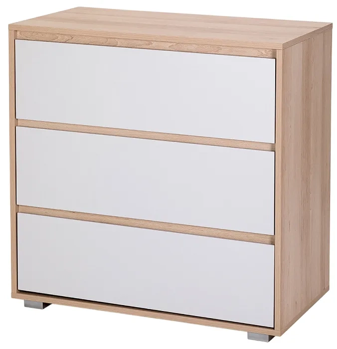 Komoda DALIA w ponadczasowym połączeniu ciepłego buku i subtelnego popielatego frontu to mebel, który łączy funkcjonalność z elegancją i uniwersalnym stylem. Dzięki trzem przestronnym szufladom zapewnia dużo miejsca na ubranka, zabawki i akcesoria — idealna do pokoju niemowlaka, przedszkolaka, a później także starszego dziecka. Komoda rośnie razem z dzieckiem: w pierwszych miesiącach może być wyposażona w nakładkę-przewijak (można dokupić osobno - brak w zestawie), a później służyć jako pełnoprawny mebel do przechowywania.
