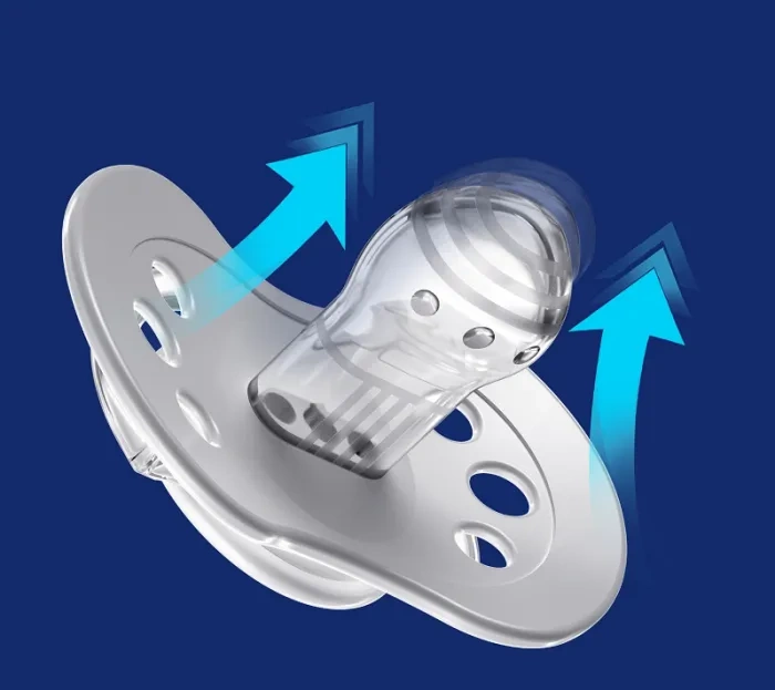 Gumka smoczka ma symetryczny kształt inspirowany kształtem brodawki sutkowej wypełnionej mlekiem, co zapewnia dziecku znajome odczucia - podobne, jak przy piersi.