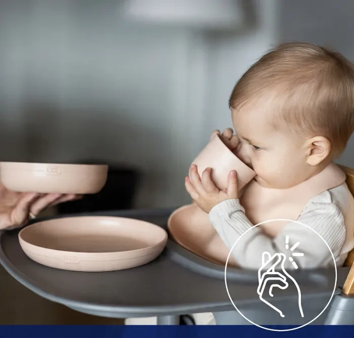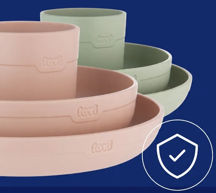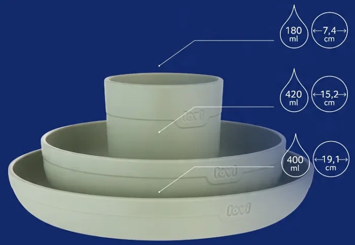Kompletny zestaw naczyń LOVI zawiera miseczkę, talerzyk oraz kubek – wszystko, czego potrzebujesz, aby rozpocząć rozszerzanie diety swojego malucha. Miseczka i talerzyk zostały stworzone z myślą o serwowaniu różnorodnych posiłków, a otwarty kubeczek doskonale sprawdzi się podczas nauki samodzielnego picia.