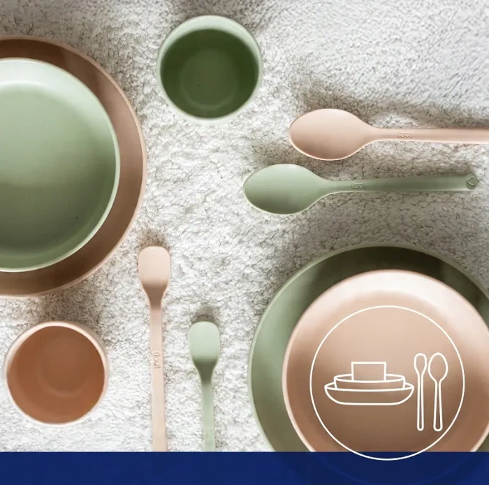 Produkty wykonano z tworzywa sztucznego bez melaminy ani BPA, co gwarantuje bezpieczeństwo użytkowania.