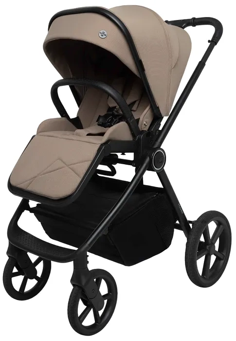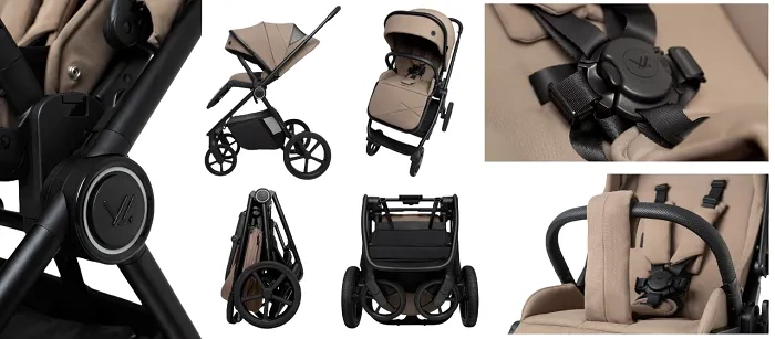 Tapicerka z powłoką hydrofobową oraz filtrem UPF50+ chroni dziecko przed słońcem, deszczem i wiatrem, a całość uzupełniają eleganckie detale.