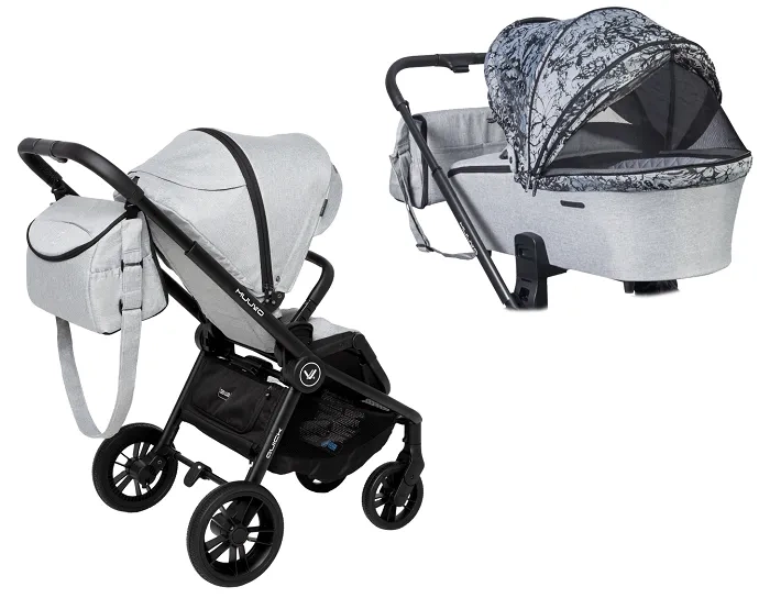 MUUVO Quick - wózek wielofunkcyjny, zestaw 2w1 z gondolą Trendy | Rocky Grey + Magic Flowers (+ ADAPTERY)
