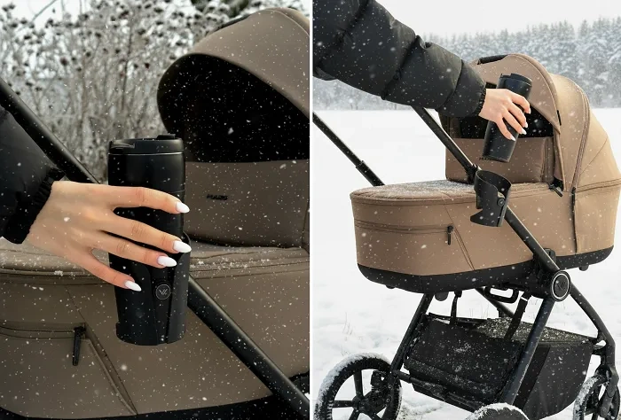 Uchwyt na kubek Muuvo to funkcjonalne akcesorium przeznaczone do wózków dziecięcych, które pozwala wygodnie przechowywać napój rodzica lub butelkę dziecka podczas spacerów. Dzięki niemu kawa, woda czy mleko pozostają pod ręką, bez konieczności trzymania napoju w dłoni - co zwiększa komfort codziennego użytkowania wózka.