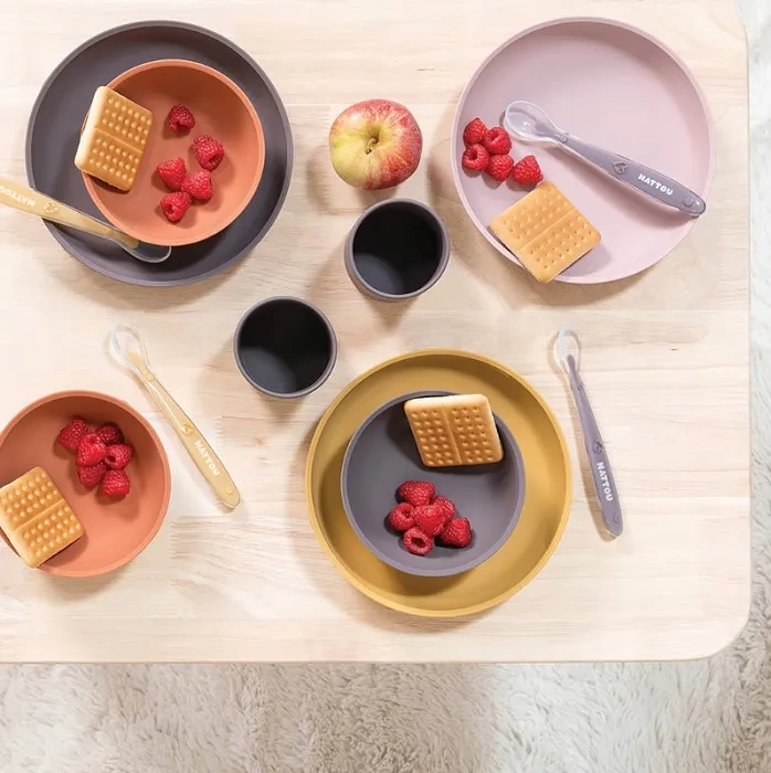 Dwuczęściowy zestaw silikonowych naczyń Nattou to wygodne i bezpieczne rozwiązanie dla najmłodszych. W komplecie znajduje się miseczka z przyssawką oraz miękka łyżeczka – idealne połączenie, które sprawdzi się zarówno podczas pierwszych posiłków, jak i w czasie nauki samodzielnego jedzenia.