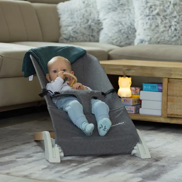 Leżaczek Calmy od PETITE&MARS w eleganckim, szarym odcieniu to niezastąpione wsparcie w codziennej opiece nad dzieckiem. Zapewnia maluchowi bezpieczne i wygodne miejsce do odpoczynku, a rodzicom daje chwilę wytchnienia. Dzięki naturalnym, kołyszącym ruchom działa kojąco i relaksująco, wspierając jednocześnie rozwój psychomotoryczny dziecka już od pierwszych dni życia.