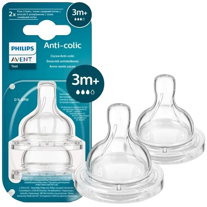 Seria produktów Philips Avent Anti-colic obejmuje smoczki o zróżnicowanej miękkości i rosnącym stopniu wypływu dla każdego etapu rozwoju dziecka.