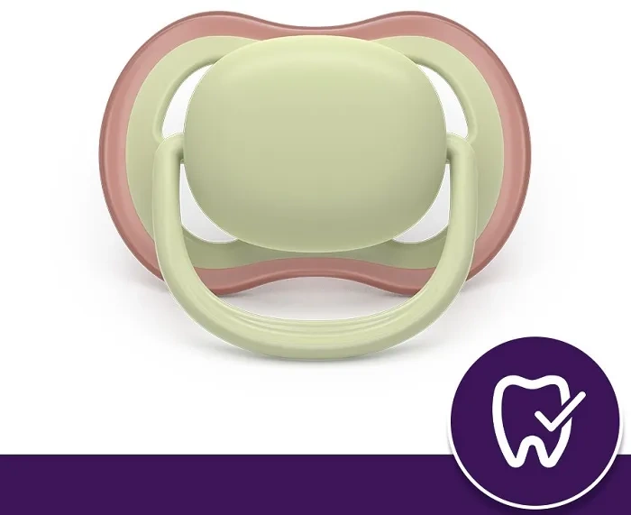Smoczek ortodontyczny Phlips Avent Ultra Air jest symetryczny i miękki, dlatego wspiera naturalny rozwój jamy ustnej.