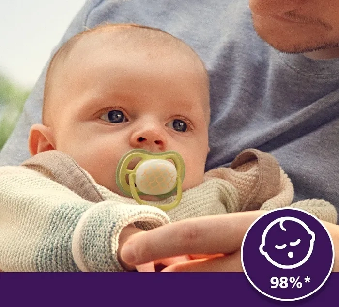 Smoczki Philips Avent Ultra Air, dzięki bardzo dużym otworom zapewniającym przepływ powietrza pozwalają skórze dziecka oddychać. Dzięki temu pozostaje ona sucha i nie ulega podrażnieniom w swych najdelikatniejszych obszarach. Świecąca tarczka umożliwia łatwe odnalezienie smoczka w ciemności, a załączone w zestawie etui to nie tylko praktyczny pojemnik na smoczki, ale także podręczne urządzenie do ich sterylizowania.