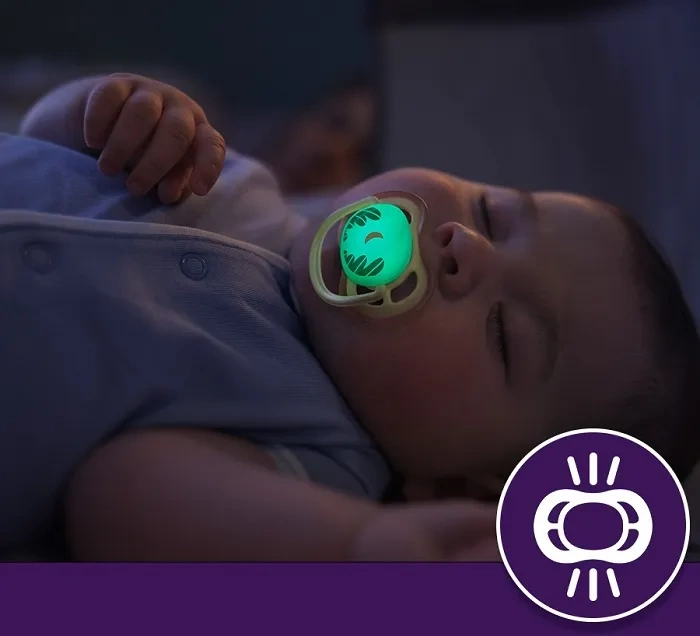 - długotrwale świeci w ciemności - co ułatwia znalezienie smoczka bez zapalania światła;