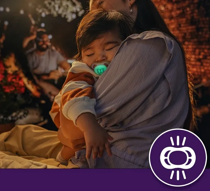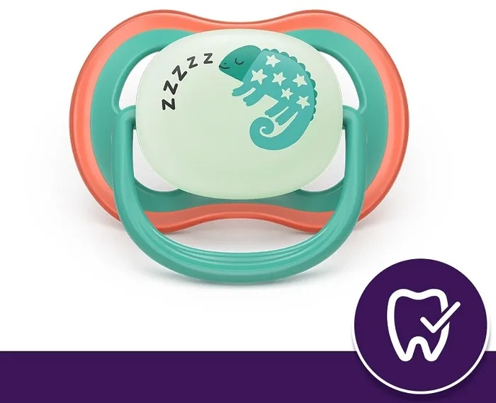 - długotrwale świeci w ciemności - co ułatwia znalezienie smoczka bez zapalania światła;