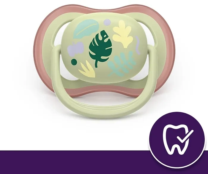 Smoczek ortodontyczny Phlips Avent Ultra Air jest symetryczny i miękki, dlatego wspiera naturalny rozwój jamy ustnej.
