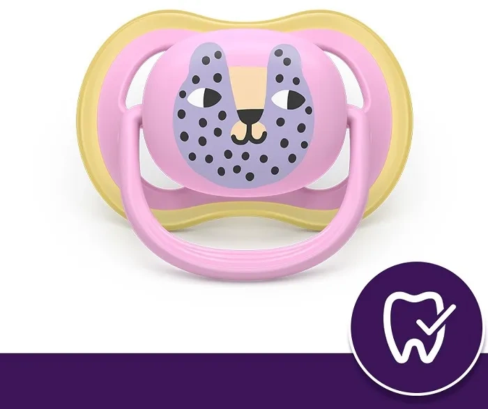 Smoczek ortodontyczny Phlips Avent Ultra Air jest symetryczny i miękki, dlatego wspiera naturalny rozwój jamy ustnej.