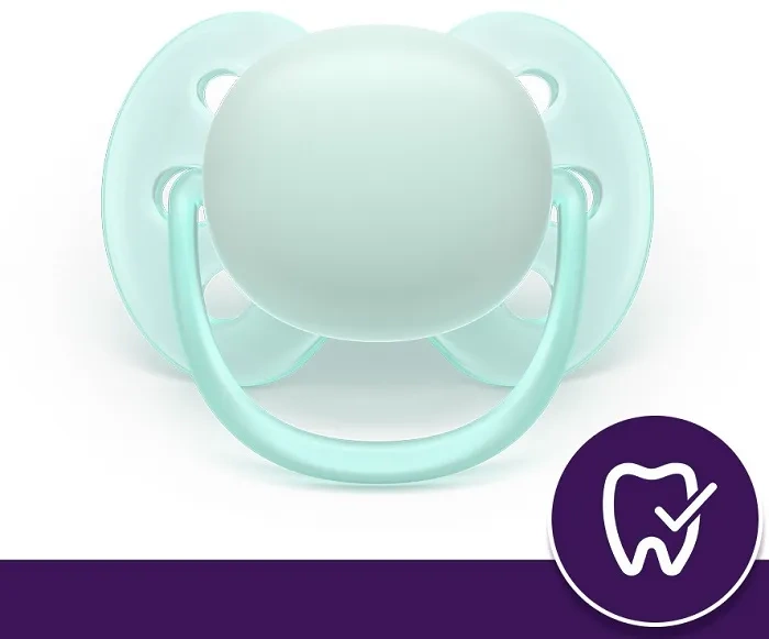 Smoczek ortodontyczny Phlips Avent Ultra Soft jest symetryczny i miękki, dlatego wspiera naturalny rozwój jamy ustnej.