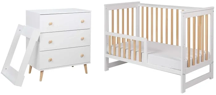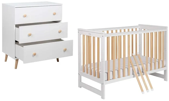 YOONCO - łóżeczko drewniane Iwi + komoda z przewijakiem | Białe-Buk