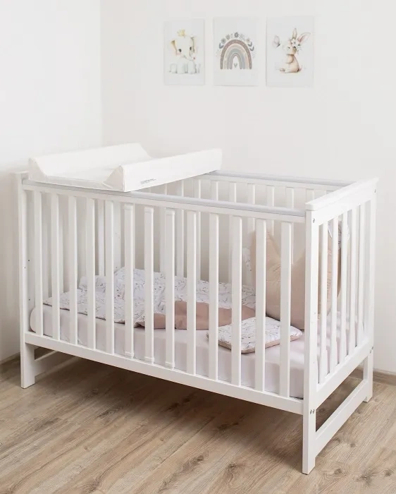 Dzięki praktycznym osłonkom umieszczonym na długich bokach, mebel jest zabezpieczony przed uszkodzeniami - oraz śladami pierwszych ząbków, które potrafi pozostawić stojący w łóżeczku maluszek :)