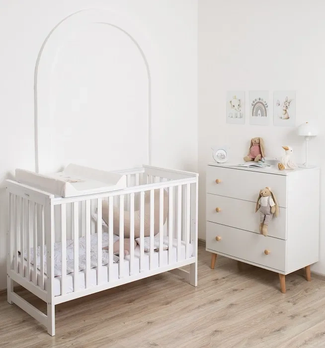 Minimalistyczny design łóżeczka Yoonco Iwi sprawia, że doskonale wpasuje się ono w każdą aranżację pokoju dziecięcego, tworząc przytulną i harmonijną przestrzeń.