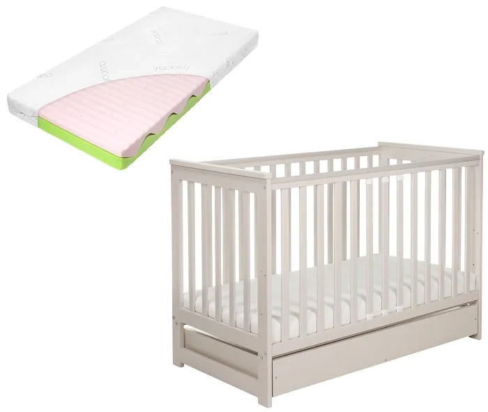 yoonco iwi łóżeczko dziecięce niemowlęce z szufladą + materac wave