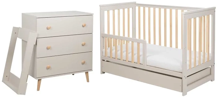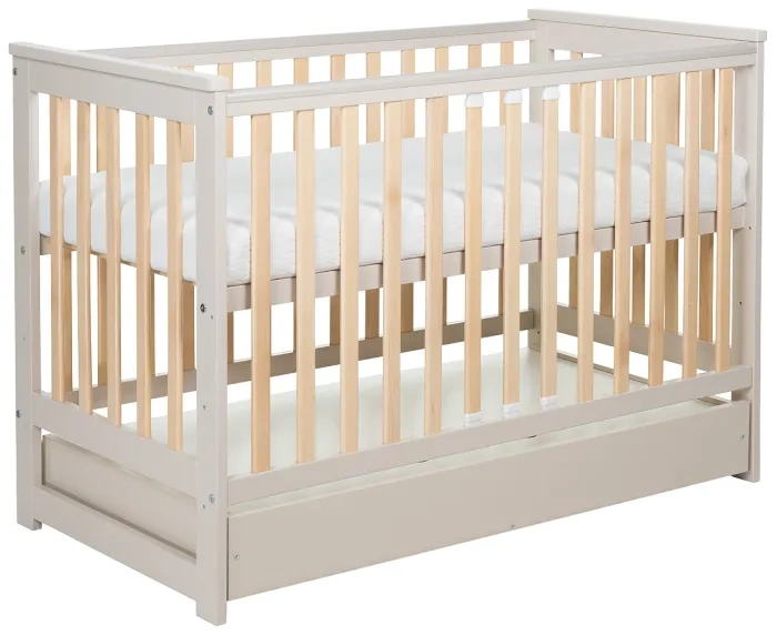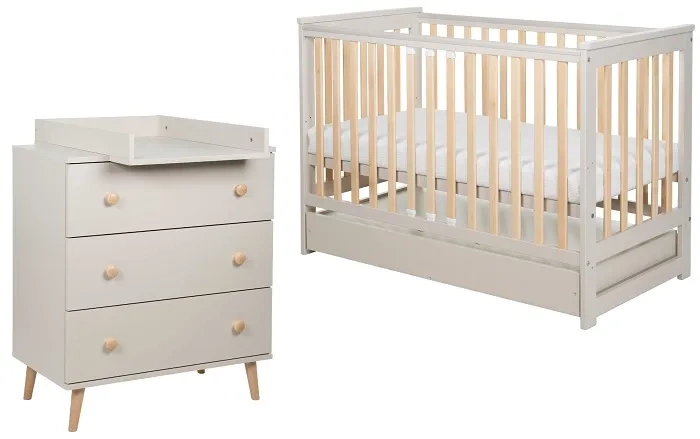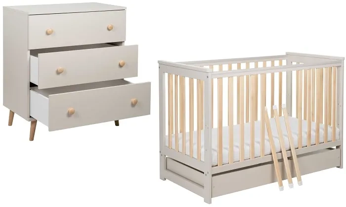 YOONCO - łóżeczko drewniane Iwi z szufladą + komoda z przewijakiem | Beż-Buk