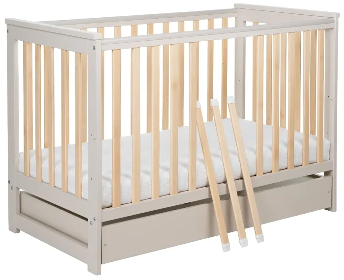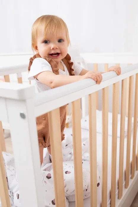 Wyjątkowo praktycznym rozwiązaniem są wyjmowane szczebelki, które umożliwiają starszemu dziecku samodzielne wychodzenie z łóżeczka w bezpieczny sposób.