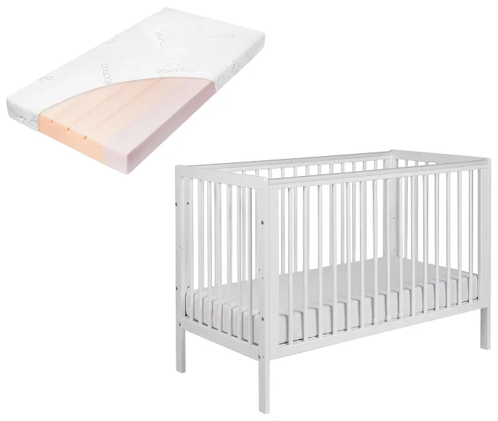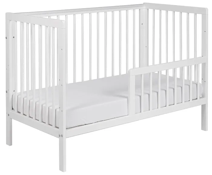 YOONCO - łóżeczko drewniane Timio z barierką + materac Air | Białe