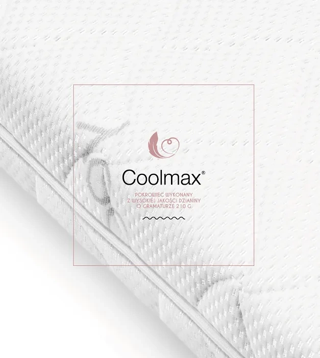 Materac wyposażony jest w pokrowiec wykonany z antyalergicznej dzianiny Coolmax®, która wspiera regulację temperatury ciała i szybko odprowadza wilgoć.