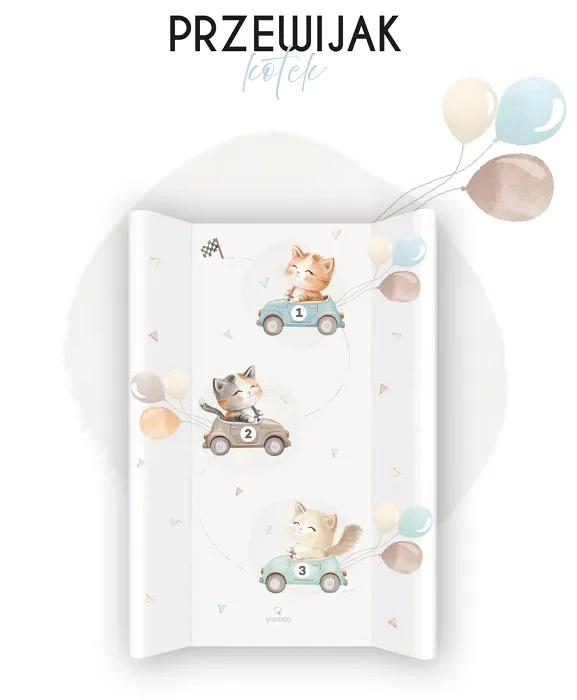 Przewijak miękki (tapicerka miękka) Yoonco o wymiarach 50x70 cm, w odróżnieniu od twardego przewijaka na łóżeczko, nie posiada usztywnienia w tylnej części ani ograniczników zapobiegających przesuwaniu.
