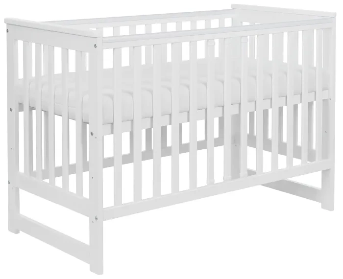 Dzięki wymiarom 120 × 60 cm oraz trzem poziomom regulacji wysokości dna, łóżeczko „rośnie” razem z dzieckiem.