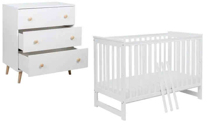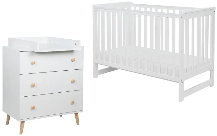 Odkryj przepiękny zestaw mebli od Yoonco! Łóżeczko Iwi to idealne miejsce dla spokojnego snu i wypoczynku maluszka, a wyjątkowo praktyczna komoda z przewijakiem pozwala na wygodne przechowywanie jego rzeczy. Mebelki zostały stworzone z myślą o potrzebach dziecka, łącząc w sobie przemyślaną funkcjonalność i elegancki design. To produkty, które wyróżniają się najwyższą jakością wykonania - będąc doskonałym przykładem solidnego, polskiego rzemiosła.