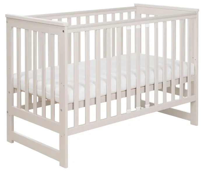 Dzięki wymiarom 120 × 60 cm oraz trzem poziomom regulacji wysokości dna, łóżeczko „rośnie” razem z dzieckiem.
