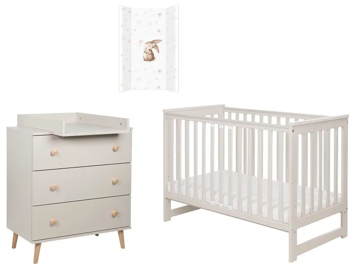 YOONCO - łóżeczko Iwi + komoda + przewijak miękki Króliczek | Beż