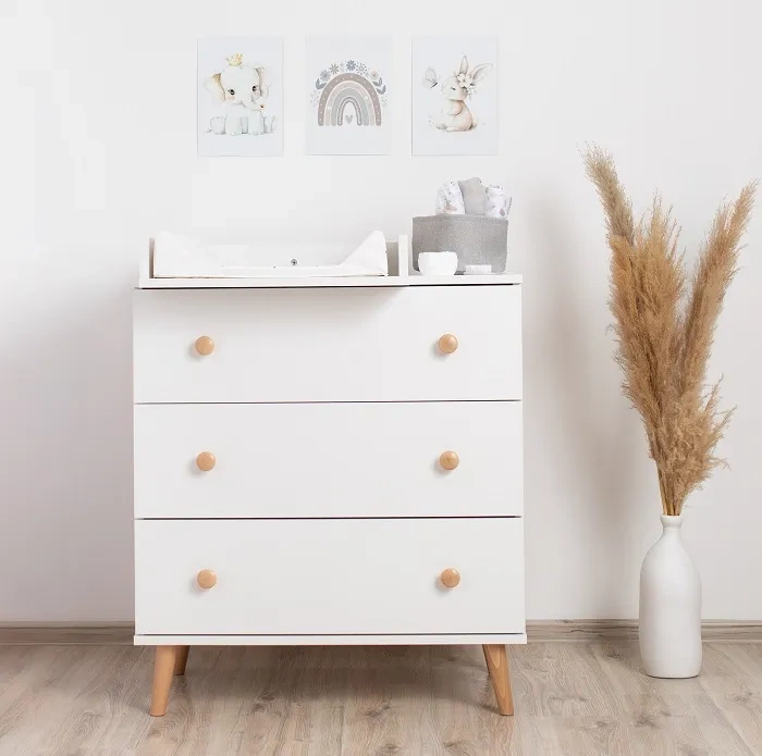 Z myślą o wygodzie rodziców i bezpieczeństwie maluszka, komoda została wyposażona w trzy przestronne szuflady.